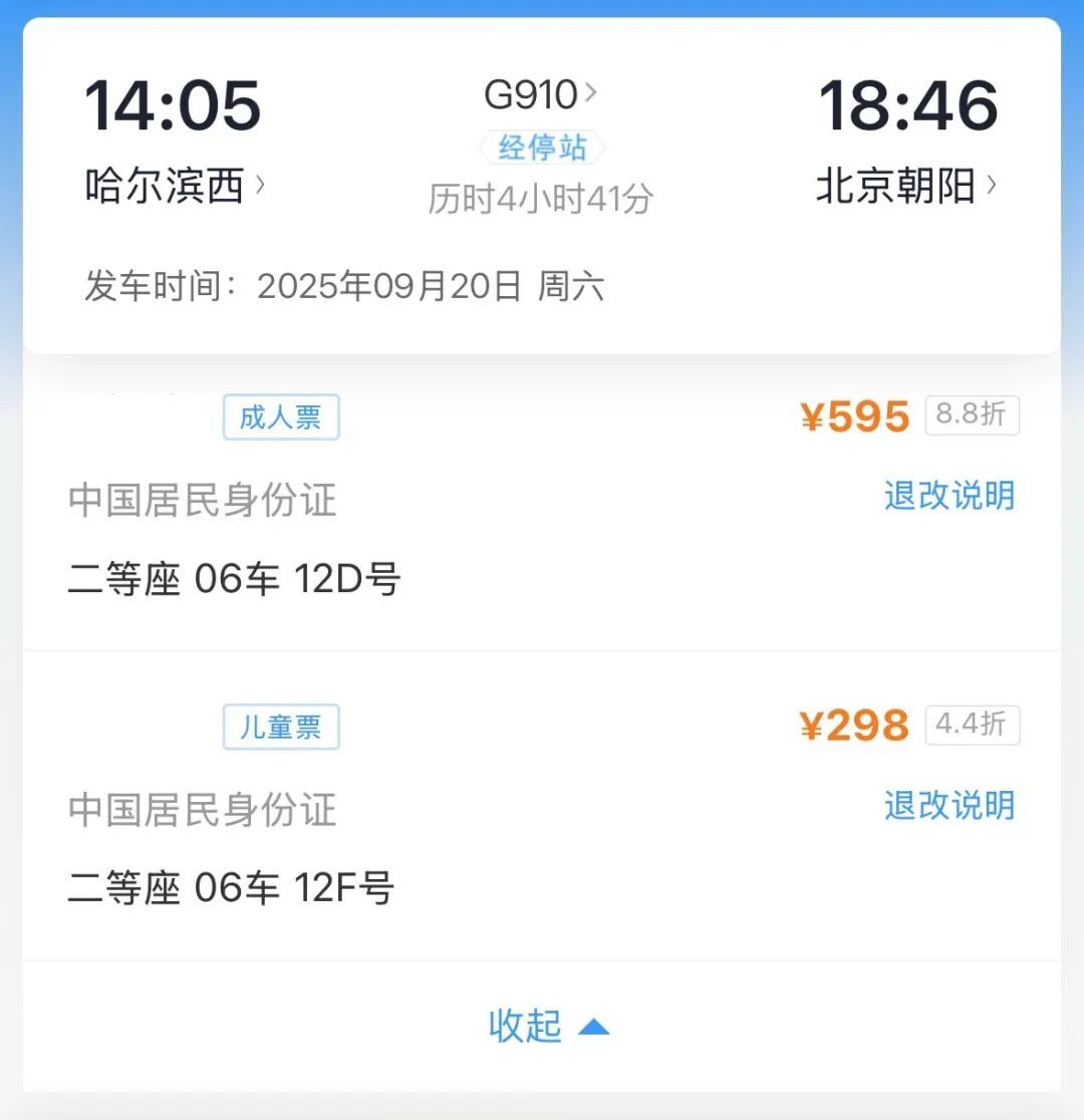 购买门票时,儿童,军事和警察和其他乘客在购买门票时会享受折扣!计算EMU火车票价折扣(等待)门票的基础已从宣布的实施票价价格的票价上更改。相关折扣票于9月6日发布。现在,编辑将向您展示购买折扣时可以节省多少钱!儿童折扣门票以677元的门票价格宣布的第二种席位,从哈尔滨·韦斯特到北京的乔阳乘坐G910列车,83%的折扣,595元,儿童折扣票50%折扣,339元,339元,50%的票价,298 Yuan,同等的8.8%和50%的票价,均为50%,50%和50%,和50%,50%,50%,均为50%,均为50%,均为50%,均为50%,均为50%,50%,50%,50%,50%的票证1083元,8.8%折扣,952元。 Mchildren的折扣票比宣布的门票价格为542元的票价为50%。执行票价的50%为476元。这相当于宣布的门票价格为88%,从50%的折扣处享受50%。也就是说,44%的折扣可以节省66元。残疾人和警察,残疾警察,残疾人消防员等,并提供有效的文件,根据“执行票50%的折扣”程序计算了每个EMU席位的折扣票。最低的折扣是票价为40%。宣布的门票的折扣票开始出售并传给有需要的人!